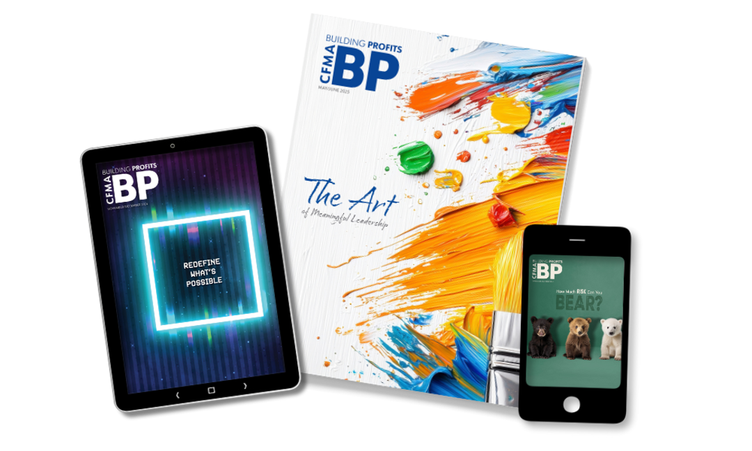 In addition to receiving the magazine six times a year, CFMA members can access CFMA Building Profits at any time, from anywhere through CFMA BP Online. Not a member? Take a tour to see what you’re missing!